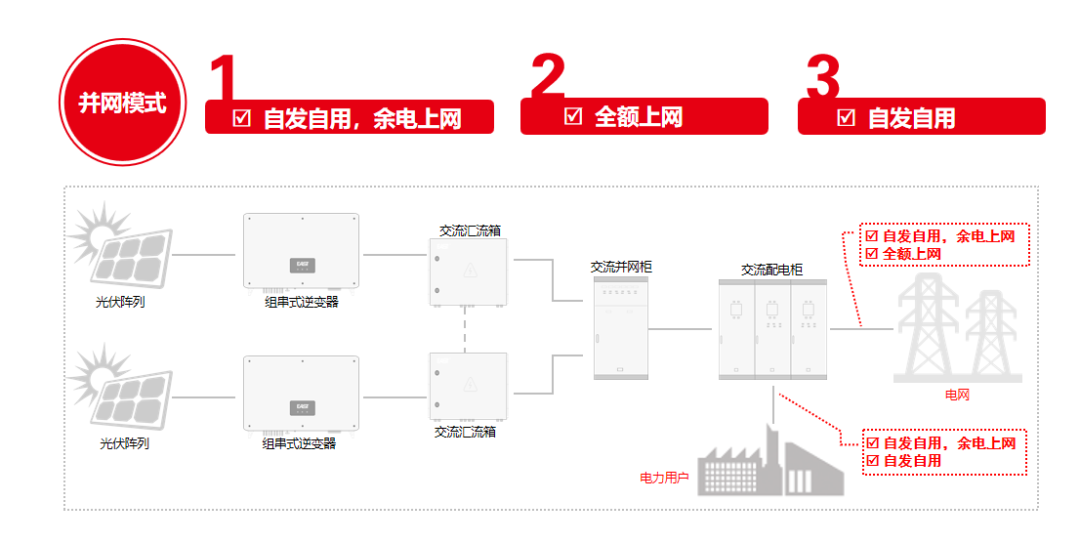 概念:指的是分布式光伏電站所發(fā)電量由發(fā)電企業(yè)自己使用。適用于需要長期且持久用電的生產(chǎn)制造企業(yè),用電側需求較大,能完全或極大程度上消納光伏電站所產(chǎn)生的電能,需要配置防逆流裝置進行警報,逆變器再根據(jù)接收到的信號進行容量的調(diào)節(jié)。